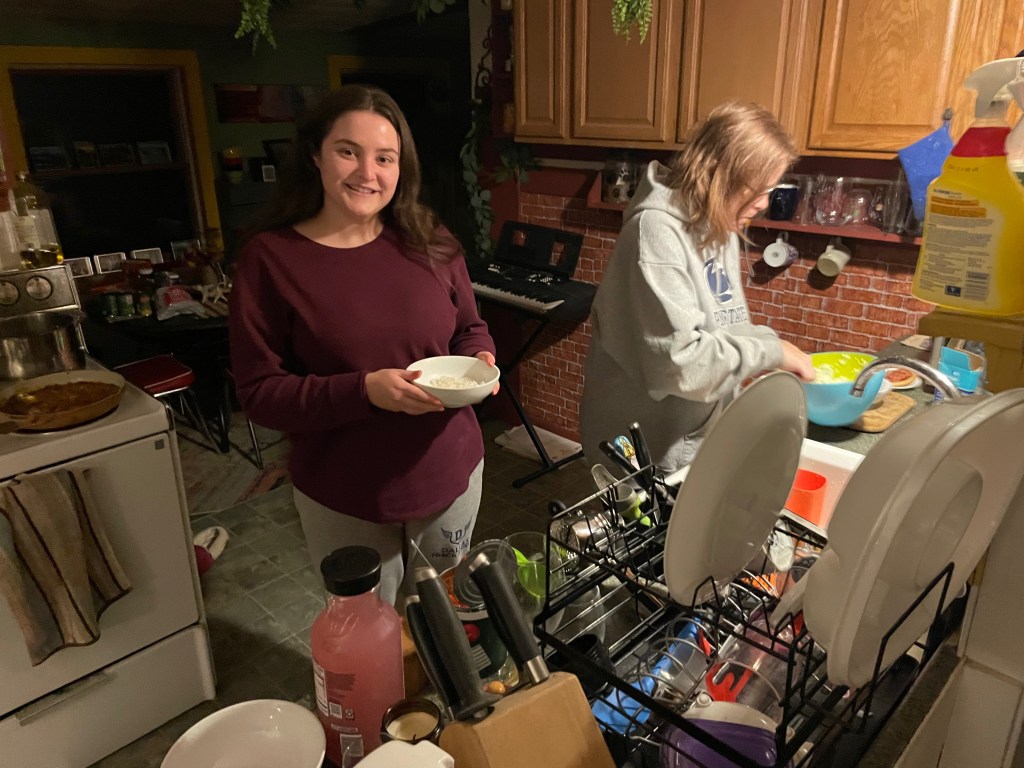 - Plan meals together. Just like when my kids were small, we talk about the week, what her work schedule looks like, and any plans with friends outside of that, which of course needs to be flexible. When I have an idea of around how many evenings she’ll be home, we talk about dinners. Like I said, we both love cooking shows, so always have opinions about food. I am also a BIG fan of quality time together, no matter what age. As lunch and breakfast are more self-serve, dinner is a joint experience. We might decide to make sushi one night, grill some fish, make tacos, order out, whatever. It gives us something fun to look forward to also!
