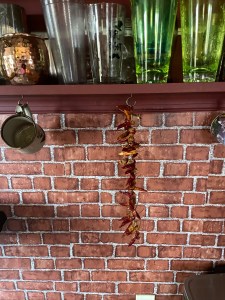 It’s funny, you can buy a fake pepper string, if you want your kitchen to look rustic and don’t care about actually using it. But shout out to my brother who actually sent me a real one that he made from his own home-grown peppers. I’ve since taken inspiration, and added this to the list of my daughters’ home-made presents for friends and family (more on home made gifts as we get a little closer to Christmas!). Having this string of yummy dried hot peppers handy brings some fun to your kitchen, and if you typically use crushed red peppers in your recipes, just chop one of these up- same flavor, just fresher. I use this on pizzas, pasta, salsas, guacamole, and soups, among other things!