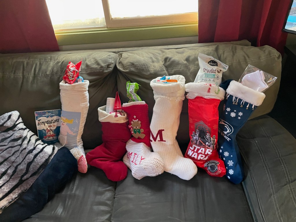 Favorite candy and cookies. Little packs of Oreos. That’s one of my daughter’s faves. Hershey kisses, Hugs with almonds, Kit Kats, it’s the time to satisfy their sweet teeth. And I add at least one holiday candy like a chocolate Santa. Me, I’m a fruity girl, so I will not doubt get some Swedish Fish in my stocking (that my husband puts together for me 🙂 ) And definitely munchies, like small bags of chips, nuts, trail mix. What do they love? My daughter LOVES pistachios…so that’s an easy one!