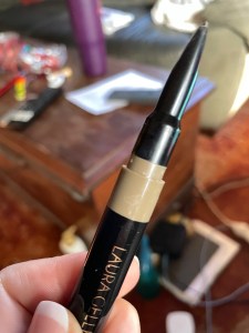 Beauty supplies. Lip glosses, nail polish and remover, face masks, small mascara or eye shadow. Bubble bath. What are they into now? My girls are into eyebrow fillers and blush. I had this Laura Geller eyebrow pencil in my bathroom, and my daughter flipped over it. I got her one for her stocking!